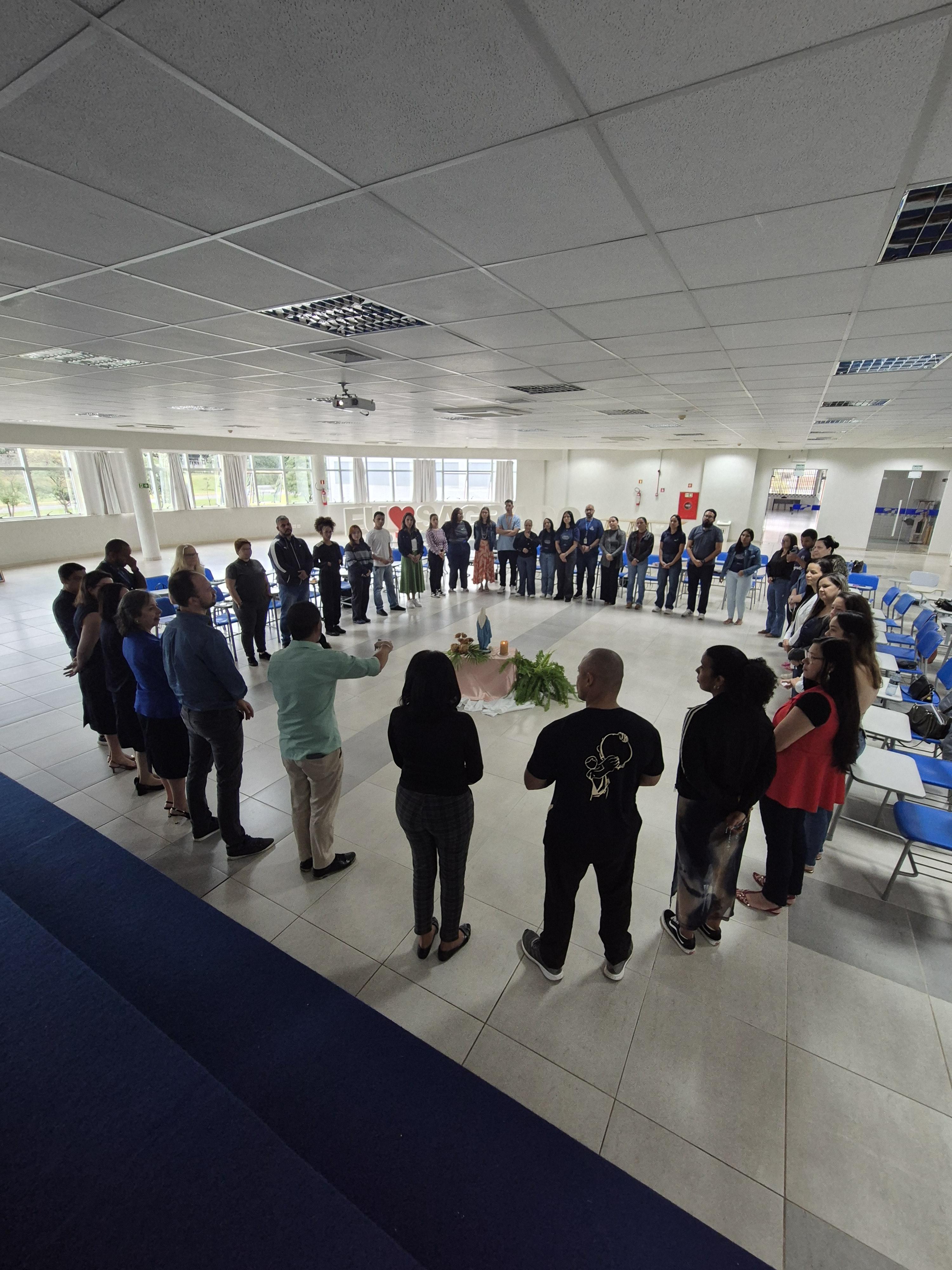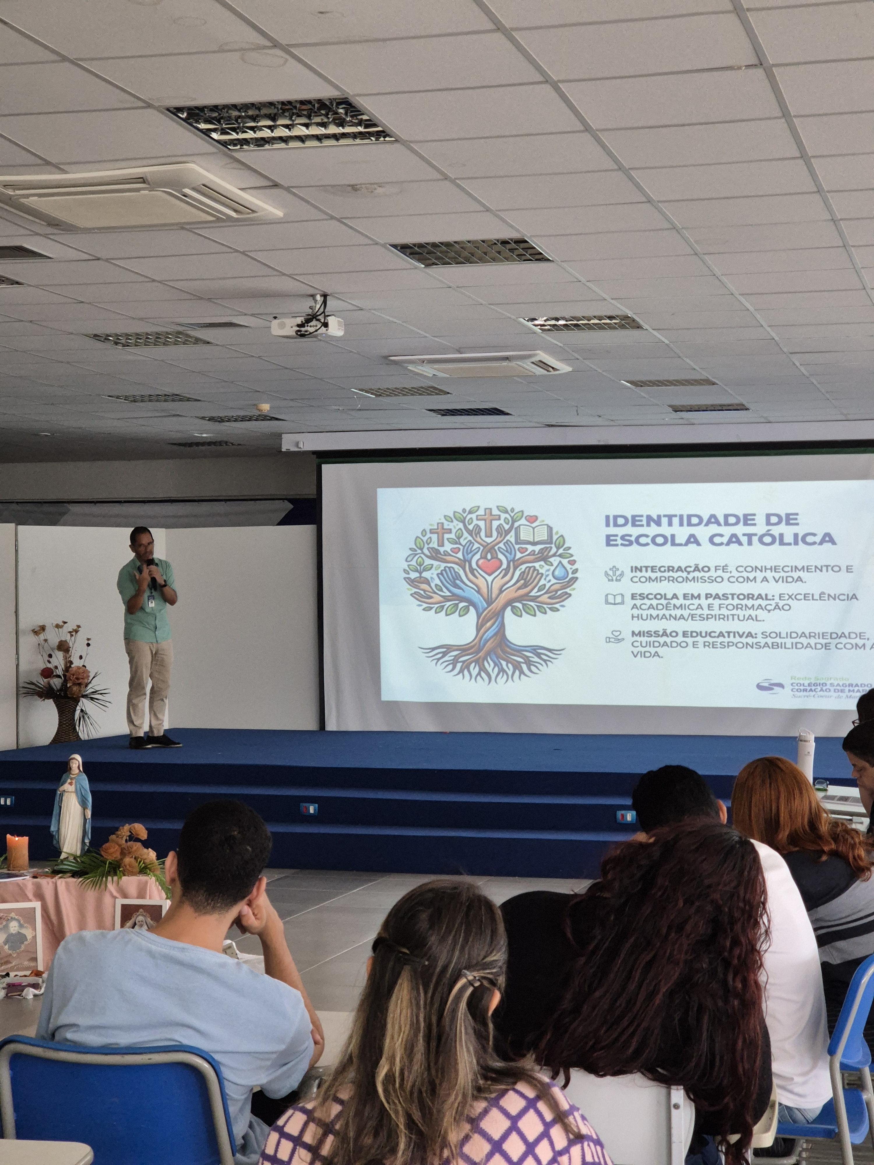 Após a dinâmica, o Núcleo de Pastoralidade da escola reforçou temas como missão, visão e valores institucionais, o carisma e a história das Religiosas do Sagrado Coração de Maria, da Rede Sagrado e de seus fundadores, Ir. Mere Saint Jean e Pe. Jean Gailhac.