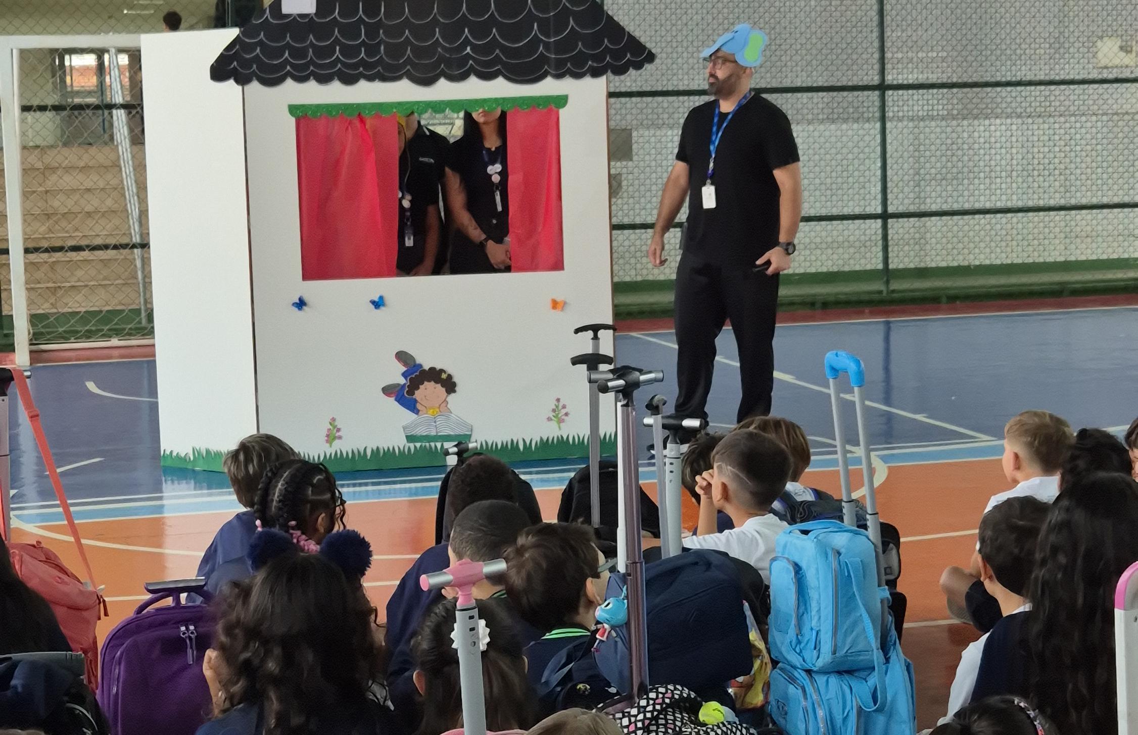 Para os Anos Iniciais do Ensino Fundamental, a acolhida teve a participação do Mickey e da Minnie, além de uma contação de histórias conduzida pela equipe pedagógica. A atividade marcou o início do ano letivo e contribuiu para a retomada das rotinas escolares, incentivando a escuta e a convivência entre os estudantes.